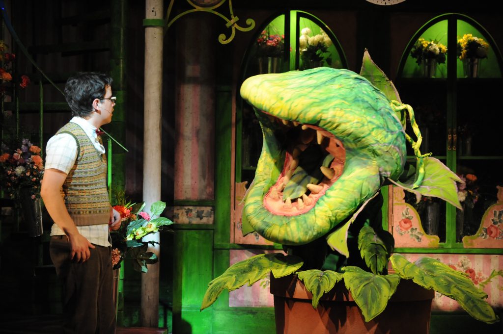 Having spent a great deal of time over the last few years performing the plant in ‘Little Shop’ Brian understands the requirements of both the puppets and of the puppeteer in this show. He appreciates how important it is to be able to get a performance from the Audrey II’s and with this in mind these plants were designed and built in conjunction with Brian for the 2010 Birmingham Rep production and are now available to hire along with three other sets from the Little Shop of Hires Company.